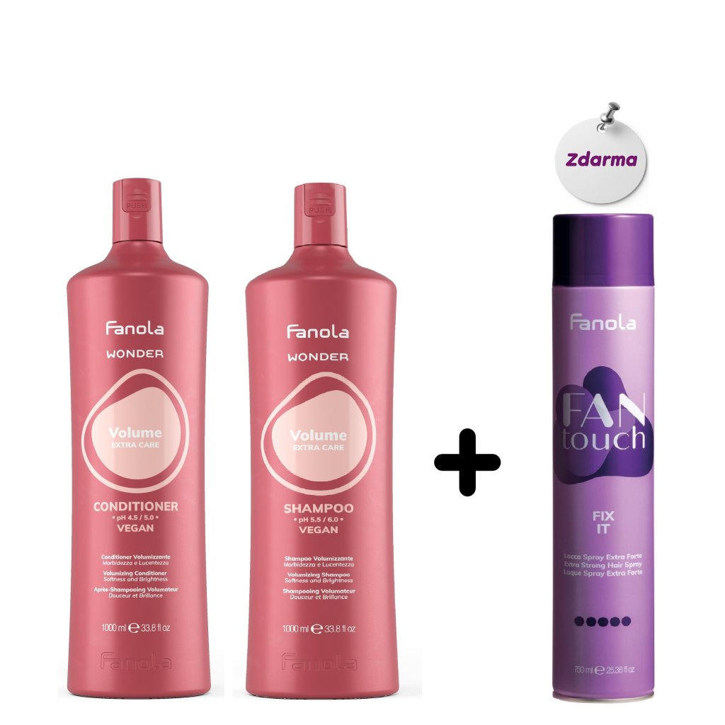 AKCE Fanola Wonder Volume šampon 1000 ml a Wonder Volume kondicionér 1000 ml + lak Fan Touch Fix it 500 ml ZDARMA