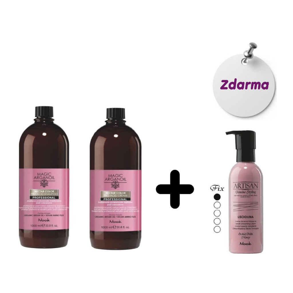 AKCE Nook Nectar Color Pro-Acid šampon 1000 ml a Nectar Color Pro-Acid maska 1000 ml + Lisciolina krém 200 ml ZDARMA