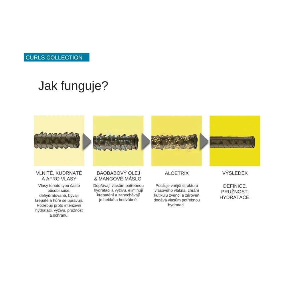 | Účinek: | Definování vln, Hydratace, Proti krepatění, Proti lámavosti křehkých vlasů, Regenerace a výživa |