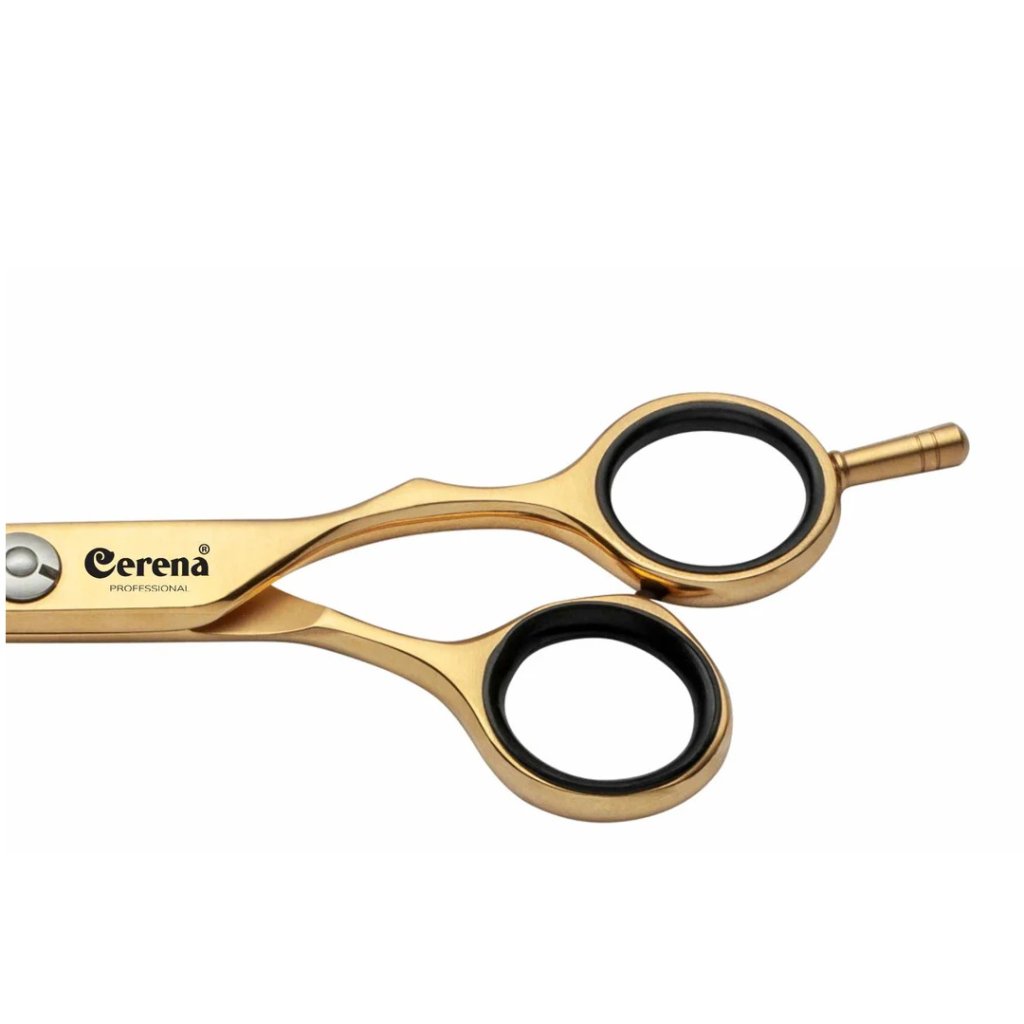 Profesionální nůžky z vysoce kvalitního pozlaceného povrchu pro luxusní lesk a odolnost. Ideální pro stříhání všech typů vlasů. Nastavitelný šroubový systém pro individuální nastavení dorazu. Offsetový tvar pro pohodlnou manipulaci. Odnímatelná opěrka prstů pro větší pohodlí.