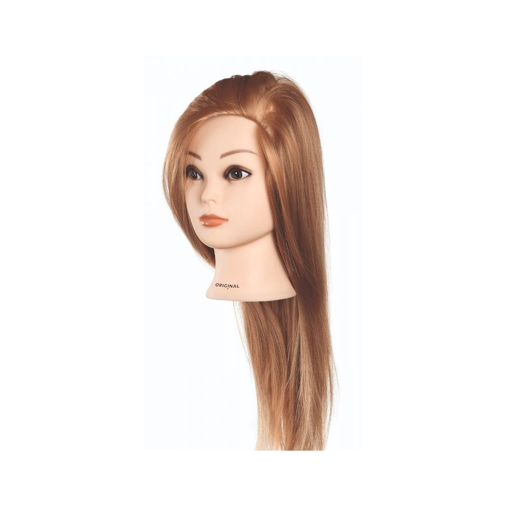Cvičná hlava - syntetické vlasy. Délka 40 cm, hustota 170-200 cm2, světlá blond. Držák cvičné hlavy není součástí.
