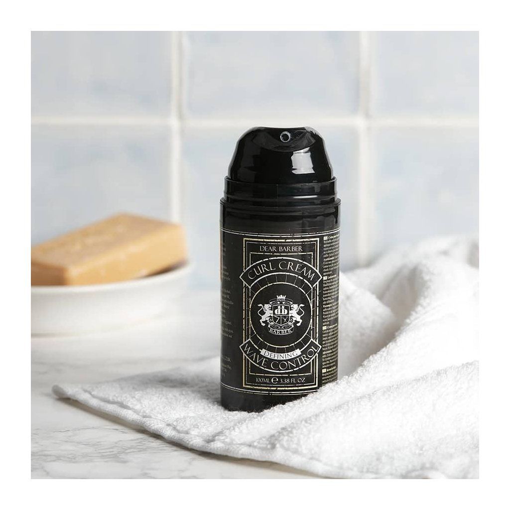 Pánský lehký stylingový krém na kudrnaté vlasy Dear Barber Curl Cream Wave Control. Dodává hydrataci a zamezuje krepatění. Vlasy jsou krásně pružné. Obsahuje přírodní betain, výtažky z kokosu, polymery pro zvýraznění kudrlin a rostlinné emolienty.