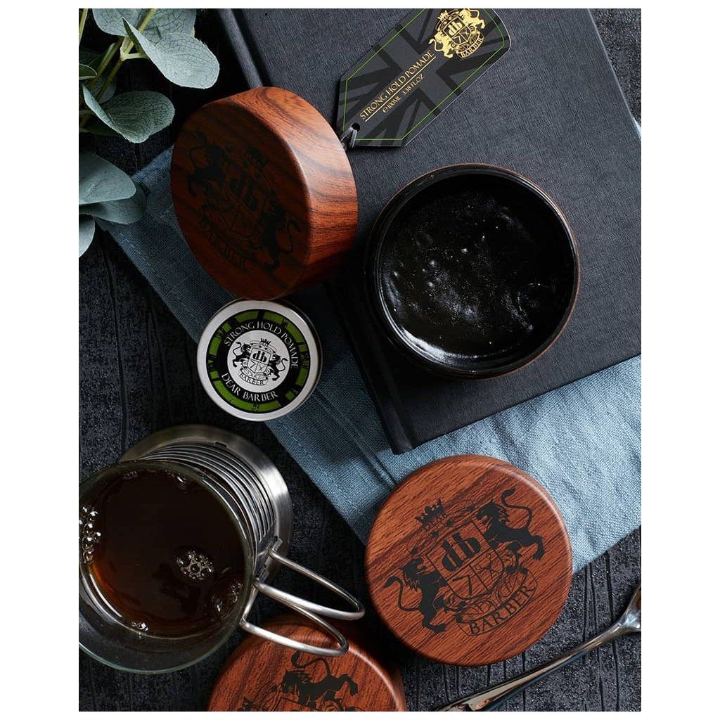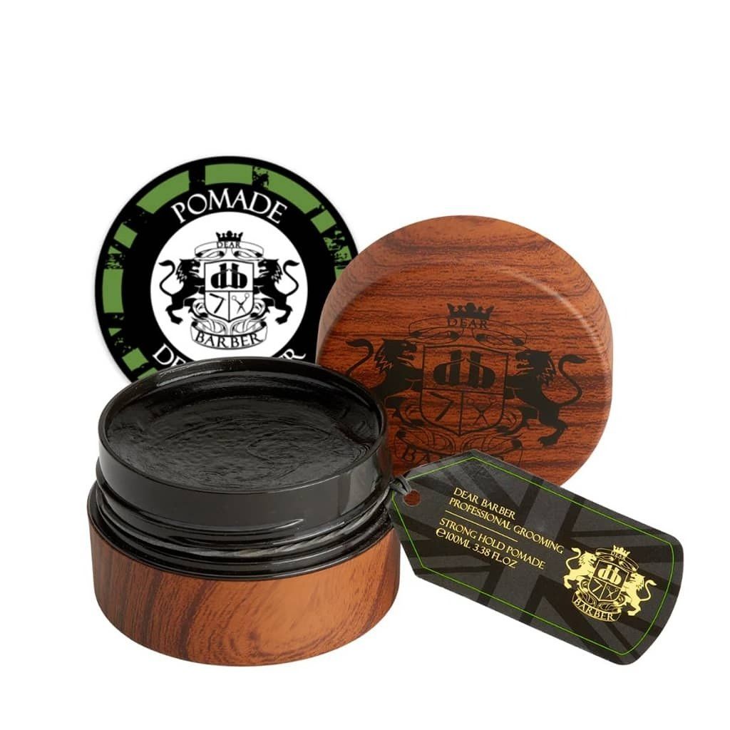 Pánská stylingová pomáda Dear Barber Strong Hold. Poskytuje silnou fixaci a vysoký lesk. Obsahuje ricinový olej, který podporuje zdravou pokožku i vlasové vlákno. Pro lesklé a extra pevné účesy.