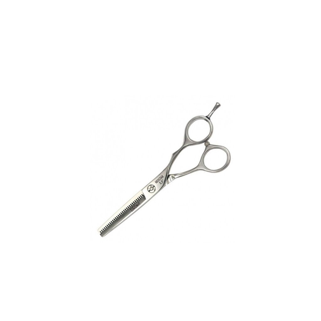 Profesionální efilační nůžky EuroStil Professional Neostar 5,5" vhodné pro práci kadeřníků. Nůžky jsou ergonomicky tvarované pro odlehčení a lepší manipulaci při střihu. Opěrka na malíček je odnímatelná.