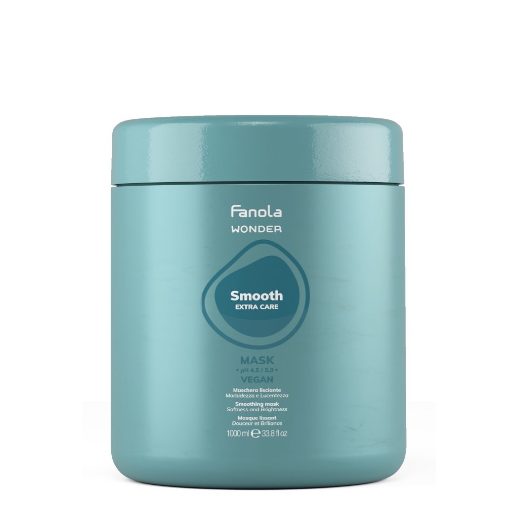 Uhlazující maska Fanola Wonder Smooth pro zacelení vlasové struktury. Vyhlazuje a změkčuje vlasy, které jdou poté lépe rozčesávat a následně upravovat. Je vhodná pro krepatící se a obtížně upravitelné vlasy. Vlasy jsou poté lesklé a poddajné. Maska restruktualizuje vlasové vlákno a zaceluje nerovnosti po celé jeho délce. Veganské složení. Bez SLS/SLES.