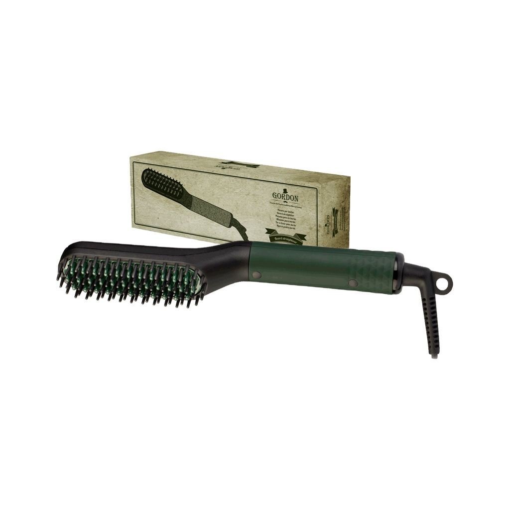 Profesionální nahřívací kartáč na vousy Gordon je perfektním nástrojem do Barber shopu i pro muže, kteří si chtějí udržovat vousy upravené. Malý a lehký design dokáže vousy vyhladit v každém bodě bez popálení pokožky. Má speciální tvar podobný kartáči. Je vybaven vyhřívanými zuby, které umožňují lepší trakci vousů, rychlé a efektivní vyhlazení. Lze nastavit 2 teploty: 170 °C nebo 190 °C - vybaveno povrchovou úpravou proti popálení. První stupeň 170 °C je určen pro normální vousy a druhý stupeň 190 °C je určen pro nepoddajné a kudrnaté vousy. Turmalínový keramický talířek má tyto rozměry 25 x 85 mm. Délka kartáče je 21 cm a váží 194 g.