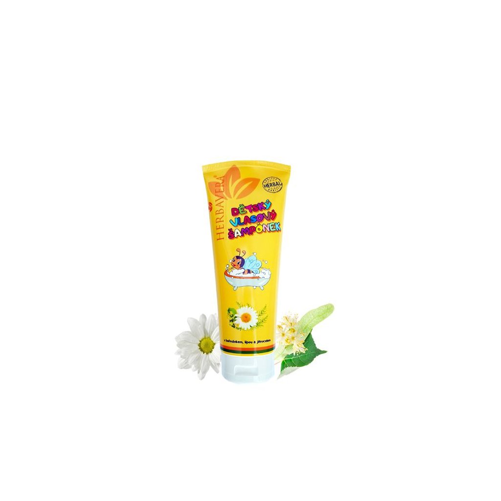 Dětský vlasový bylinný šampon Herbavera s obsahem heřmánku, lípy, jitrocele a panthenolu. Je jemný a nedráždivý s výbornými účinky pro dětské vlásky. Vlasy zanechává hebké, lesklé a jdou poté snadno rozčesat. Vlasům zůstává svěží vůně heřmánku a lipového květu.
