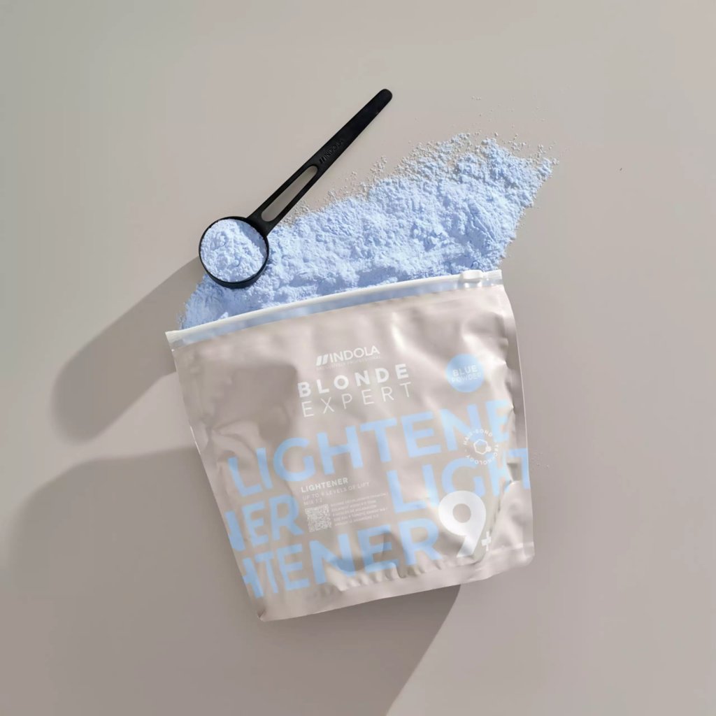 Zesvětlovací prášek modrý Indola Professional Blonde Expert Lightener 9+. Až 9 úrovní zesvětlení a čistých blond výsledků. Obsahuje modrou pigmentovou bázi, která pomáhá neutralizovat teplé podtóny během blondování. Jeho inovativní technologie opravuje vnitřní matrice a budováním struktury zlepšuje odolnost vlasů. Výsledkem je opravená, hladká a lesklá kutikula. Vlasy jsou odolnější a zdravější. Integrovaná technologie Hair-Bond T zajišťuje snížení lámání vlasů až o 90%.