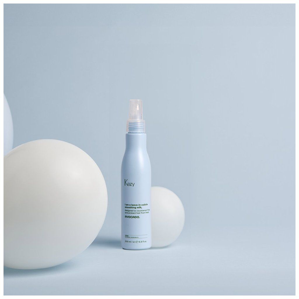 Bezoplachové uhlazující mléko Kezy Avocado Leave-In Cuticle Smooth. Uzavírá vlasovou kutikulu a poskytuje tepelnou ochranu až do 230 °C. Vyhlazuje vlasové vlákno. Zvyšuje lesk a chrání vlasy před vnějšími vlivy a dehydratací způsobenou teplem. Mléko je vhodné zejména pro suché vlasy. Zabraňuje krepatění. Zanechává vlasy jemné, hedvábné a pružné. Obsahuje avokádový olej. Veganské složení.