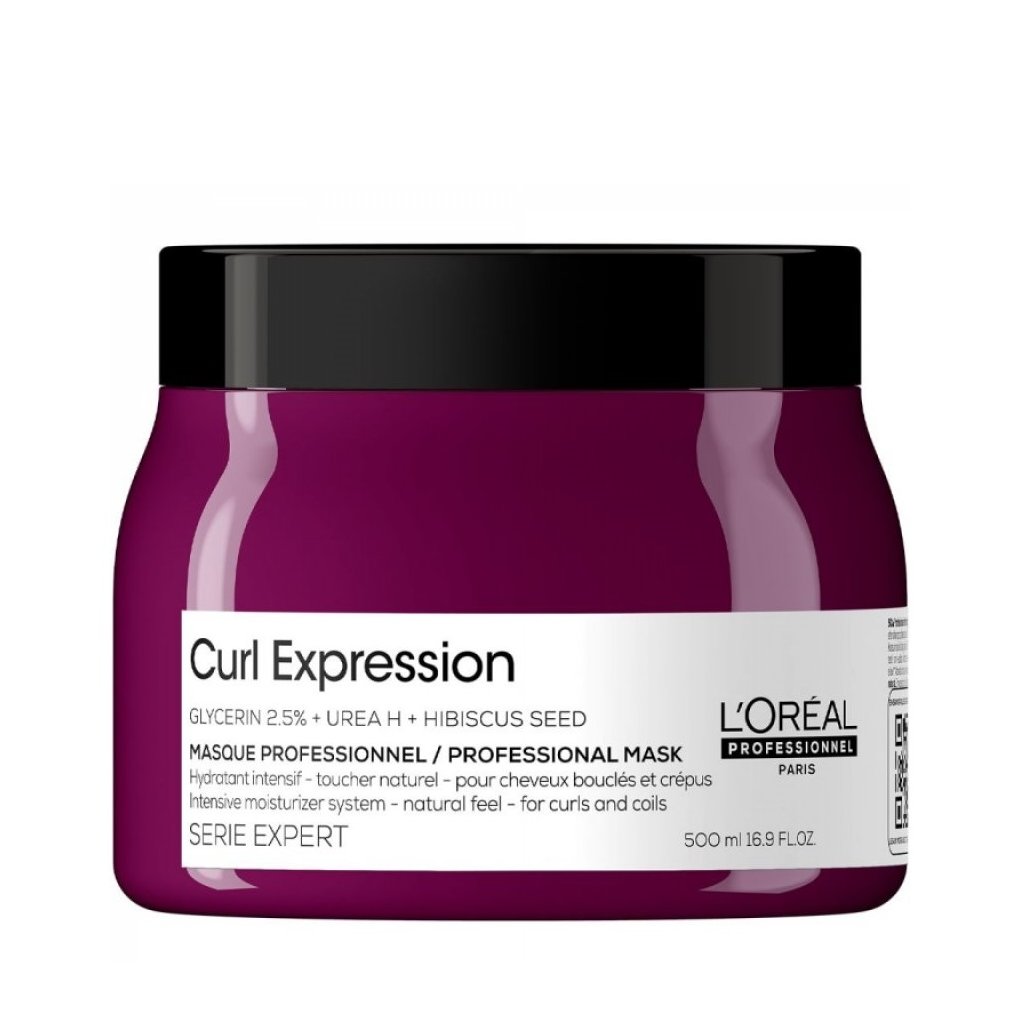 Intenzivně hydratační maska pro vlnité a kudrnaté vlasy Loréal Professionnel Curl Expression dopřává vlasům péči jako z kadeřnického salonu. Složení obohacené o koncentrovaný 2,5% glycerin, Urea H složku a extrakt ze semen ibišku do hloubky hydratuje vlasové vlákno. Jemná balzámová konzistence se okamžitě vstřebává a uzavírá ve vlasech vlhkost. Vlasy se po použití masky snadno rozčesávají a nejsou krepaté. Výsledkem jsou až 2x více lesklé a jasně definované vlny a kudrliny.
