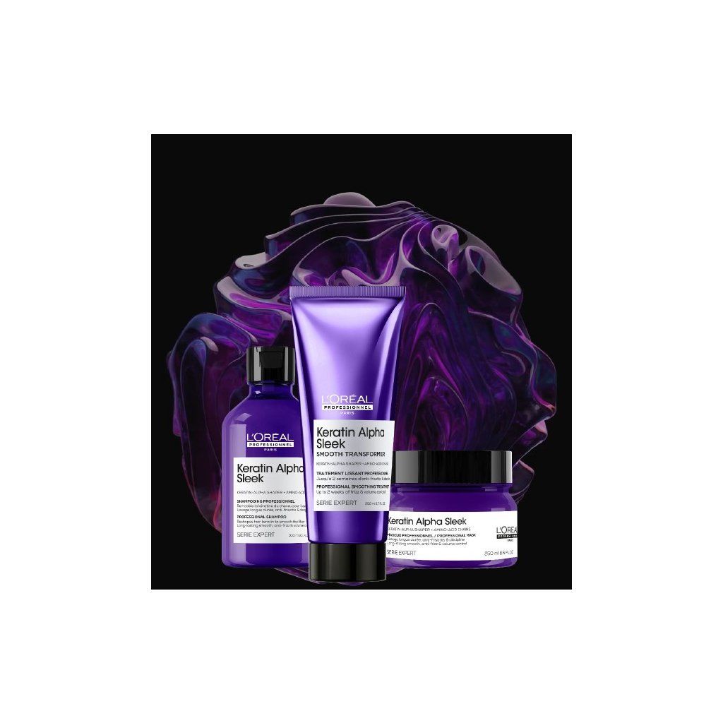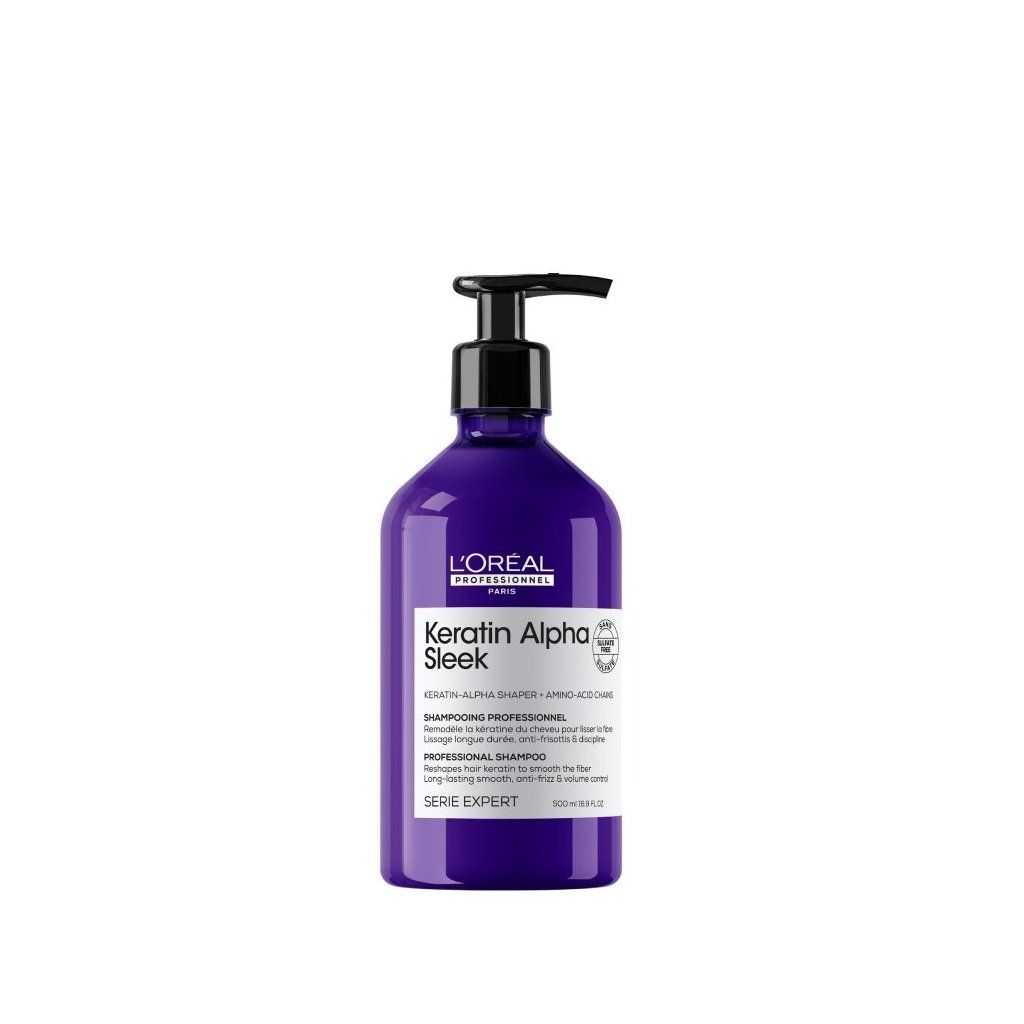 Uhlazující šampon L'Oréal Professionnel Serie Expert Keratin Alpha Sleek pro každodenní použití s obsahem Keratin Sleeker a aminokyselinových řetězců. Šampon je navržený pro všechny, kdo touží po rovných, hedvábných vlasech bez krepatění. Krémová textura přináší hloubkovou hydrataci, zářivý lesk a chrání vlasy před elektrizováním. S každým opláchnutím vylepšuje texturu vlasů, definuje jejich tvar, dodává objem a zanechává vlasy neodolatelně hladké bez ohledu na jejich typ.