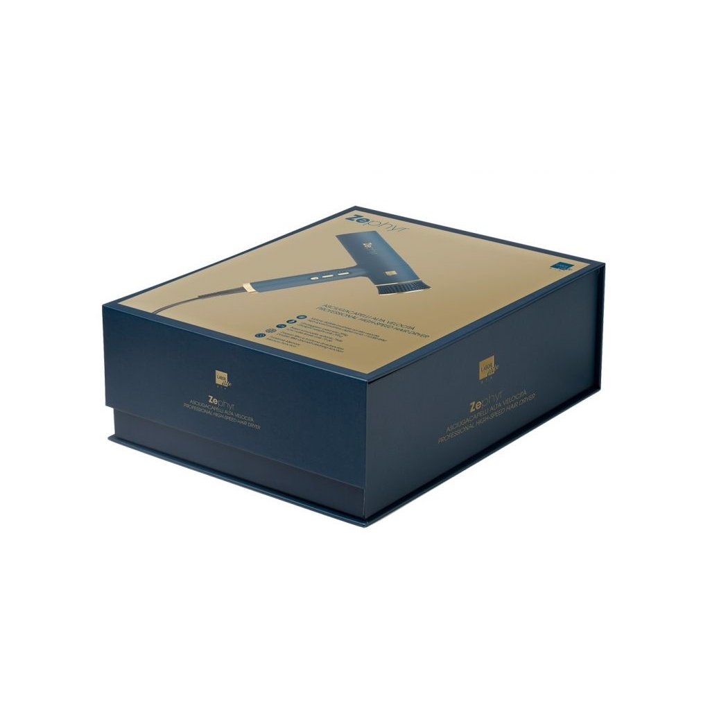 Profesionální fén Zephyr s digitálním Brushless motorem s rychlostí 110 000 ot./min. Je navržen pro dlouhou životnost (přes 2 500 hodin). Nejtišší fén ve své třídě, který má pouze 75 db a nevydává žádné ostré syčení. Díky silnému proudění vzduchu je čas sušení zkrácen ve srovnání s běžnými vysoušeči vlasů, zatímco technologie Extra-ion Shine dodává vlasům bezkonkurenční lesk. LED kontrolky umožňují okamžitou kontrolu nastavení (až 12 možných konfigurací). Funkce paměť umožňuje použít poslední nastavení. Odsávání vzduchu je dosaženo pomocí dvojitého ochranného filtru: houbového protiprachového předfiltru a mikroperforovaného ocelového filtru. Aktivací funkce samočištění se motor otáčí v opačném směru, což umožňuje hlubší a důkladnější čištění. Disponuje síťovým kabelem o délce 3 m.
