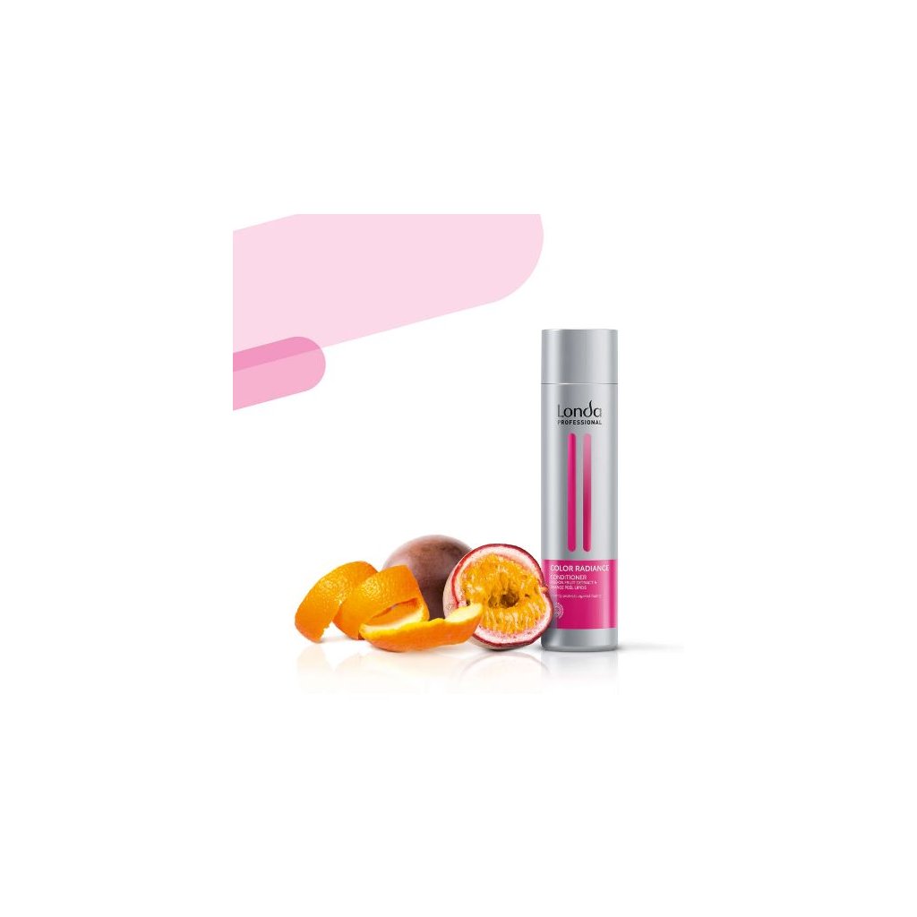 Kondicionér pro barvené vlasy Londa Professional Radiance. Chrání barvu vlasů před blednutím. Vlasy jsou po používání silné a lesklé. Uzavírá vlasová vlákna po šamponování, ponechává jejich strukturu pevnou a povrch hebký na dotek. Usnadňuje rozčesávání a chrání před poškozením. Technologie Radialux Micro–Ions zbavuje chemických residuí po barvení v kadeřnickém salonu a umožňuje důkladné uzavření vlasu a ukotvení barevných pigmentů. Obsahuje extrakt z mučenky a lipidy z pomerančové kůry.