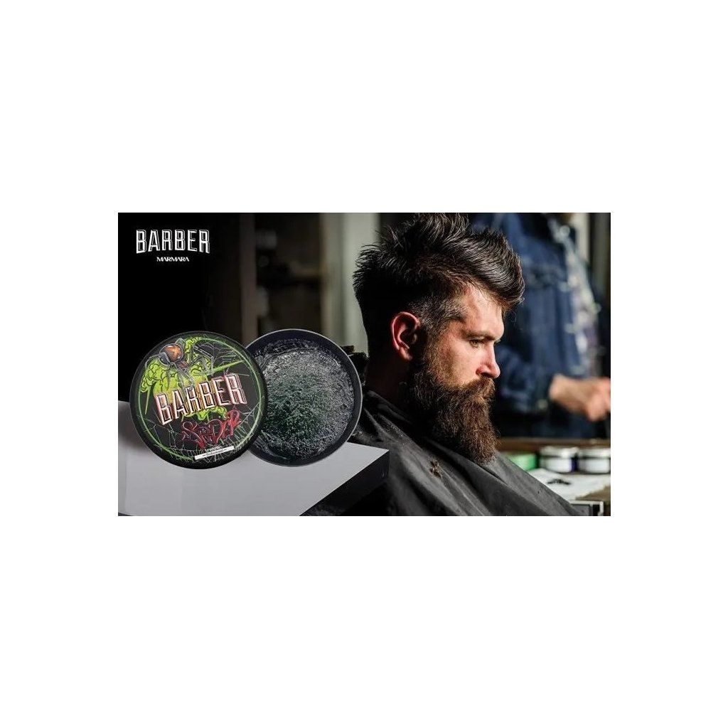 Pánský vláknitý vosk na vlasy Marmara Barber Spider do Barber shopu. Jedná se o unikátní vláknitý vosk, který spojuje extrémní pružnost s dlouhotrvající fixací. Poskytuje sílu, flexibilitu a lesk. Jeho charakteristická pavučinová textura umožňuje vytvářet objemné účesy bez zatížení. Na rozdíl od klasických vosků vytváří elastické vlákna, která zaručí flexibilitu a zároveň precizní tvar účesu pro rozcuchaný styl či uhlazený look. Pro všechny typy vlasů. Pánská vůně s citrusovým nádechem.