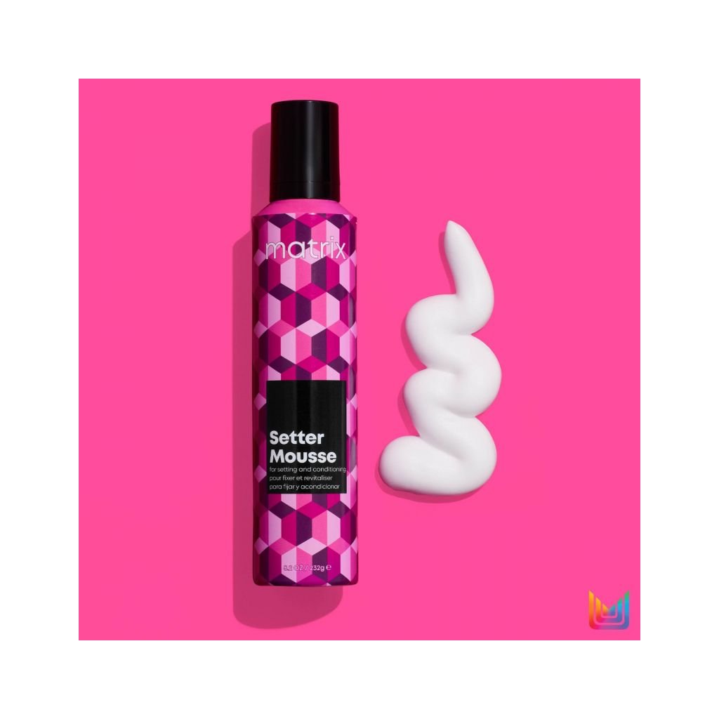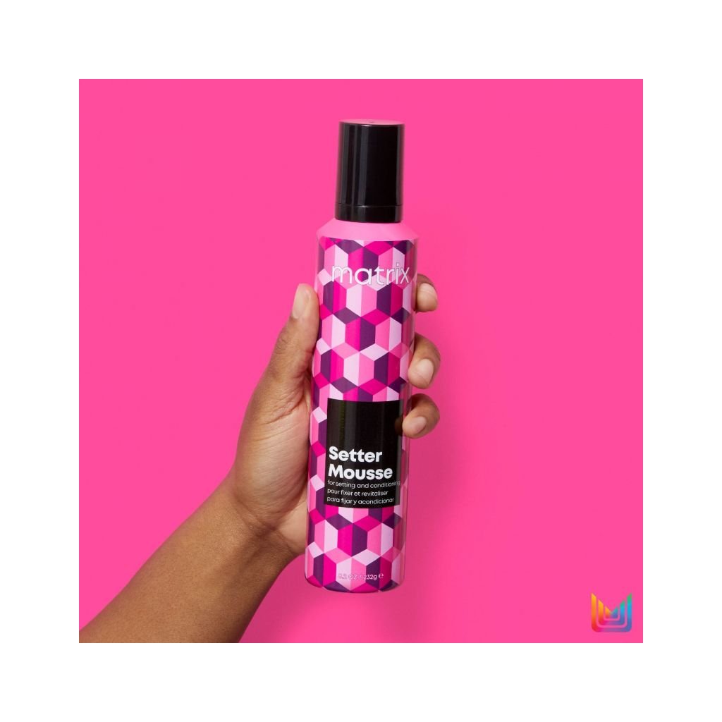 Matrix Setter Mousse je lehounká pěna pro velký objem a lesk. Plně tvárná fixace s dlouhotrvající účesovou pamětí. Veganské složení - bez živočišných derivátů.