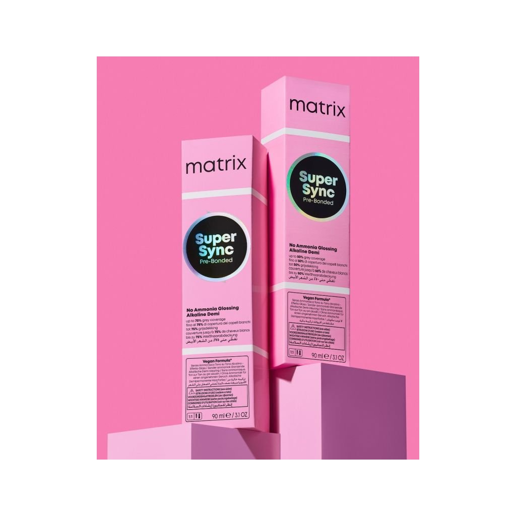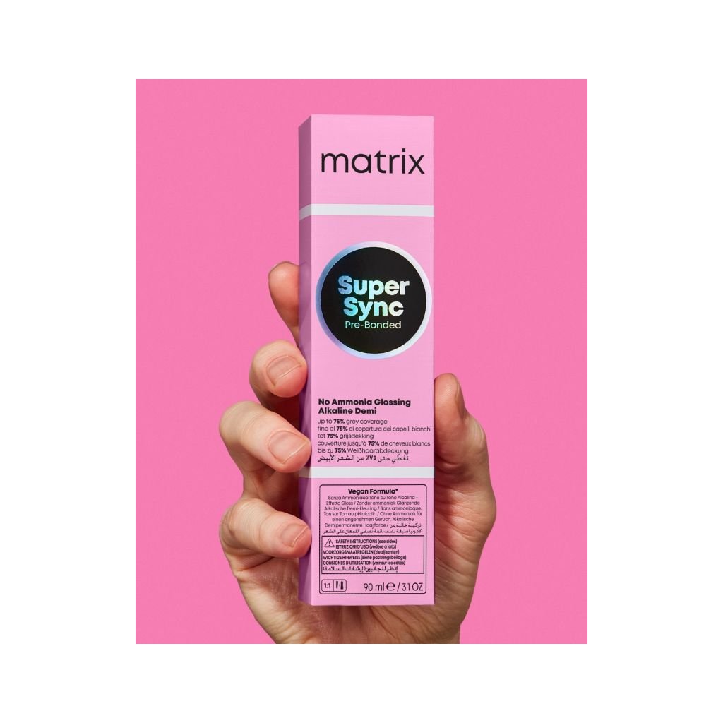 Barvy Super Sync s novým komplexem na ochranu vazeb pro okamžitou ochranu vlasového vlákna. Ještě lepší krytí bílých vlasů bez amoniaku. Nabízí až 75% krytí šedin bez amoniaku. Nový komplex na ochranu vazeb pro okamžitou ochranu vlasového vlákna a lesklejší vlasy. Vydrží až 27 umytí. Uhlazuje a posiluje vlasy. Veganské složení. Míchejte pouze s oxidantem Matrix.