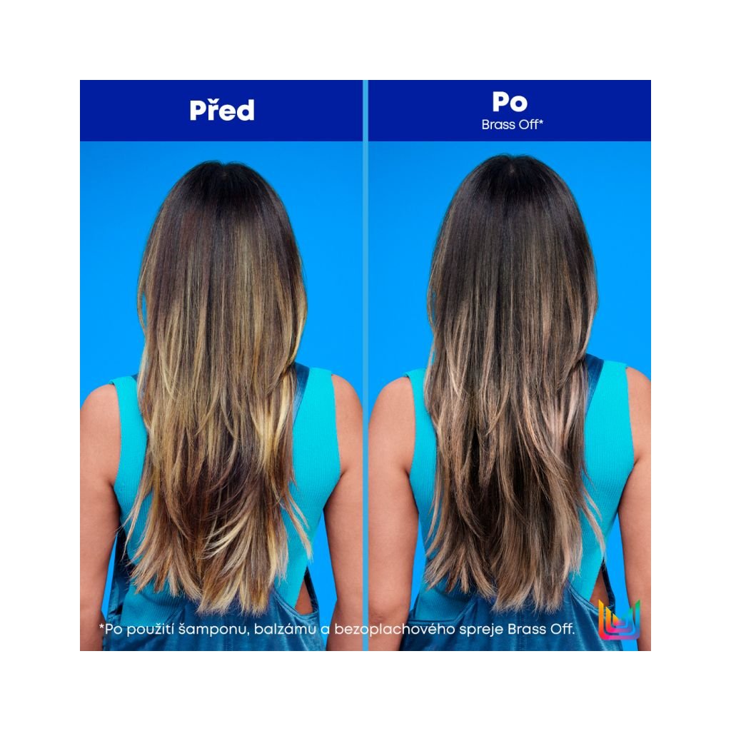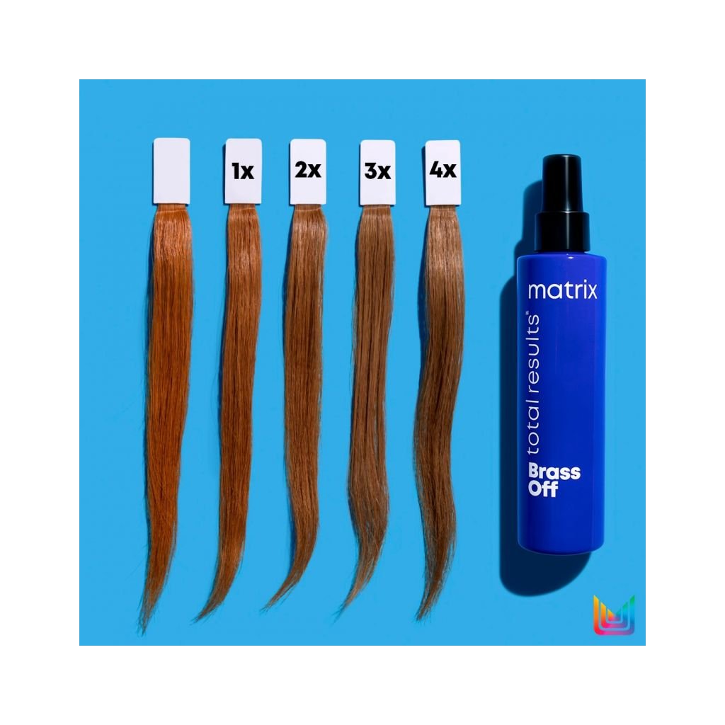 Matrix Total Results Brass Off All-in-one neutralizační bezoplachový sprej představuje vrstvitelnou tónující směs s pigmenty (lze aplikovat vícekrát pro viditelnější výsledky), které postupně neutralizují mosazné a oranžové tóny na zesvětlených vlasech. Tento all-in-one bezoplachový sprej má ještě těchto 10 benefitů: pomáhá bojovat proti krepatění a poletujícím vlasům, vylepšuje vzhled roztřepených konců, pomáhá předcházet lámání způsobenému kartáčováním, usnadňuje rozčesávání, uhlazuje kutikulu, vyživuje, hydratuje, dodává lesk, pomáhá se snažší úpravou vlasů a připravuje vlasy na styling.