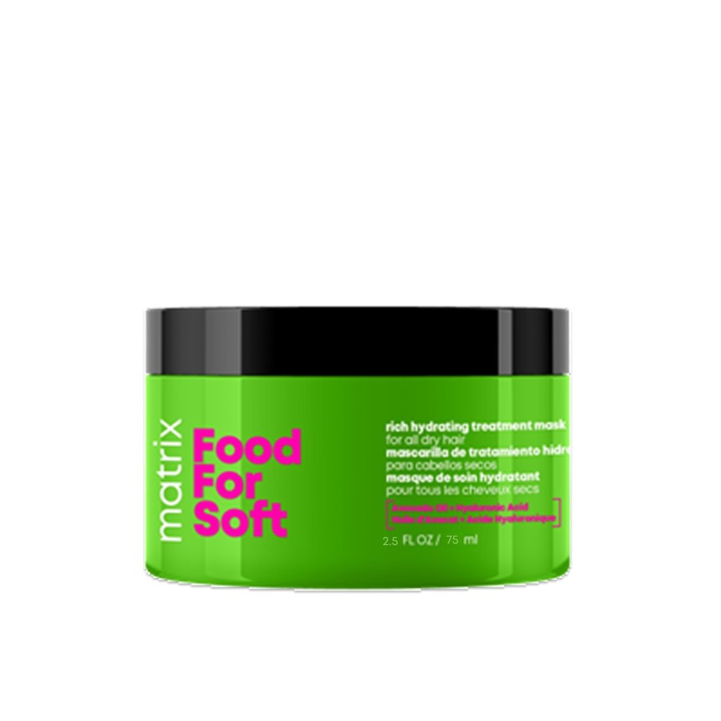Hydratační maska Matrix Food For Soft v malém cestovním balení obohacená o avokádový olej a kyselinu hyaluronovou, doplňuje hydrataci dokonce i u nejsušších a nejporéznějších vlasů, díky čemuž je ideální při každém mytí. Nový krok doplňující 4 kroky stávající služby, nebo pro použití místo kondicionéru, pokud je potřeba. Vlasy zanechává hydratované a hebké s extra leskem.