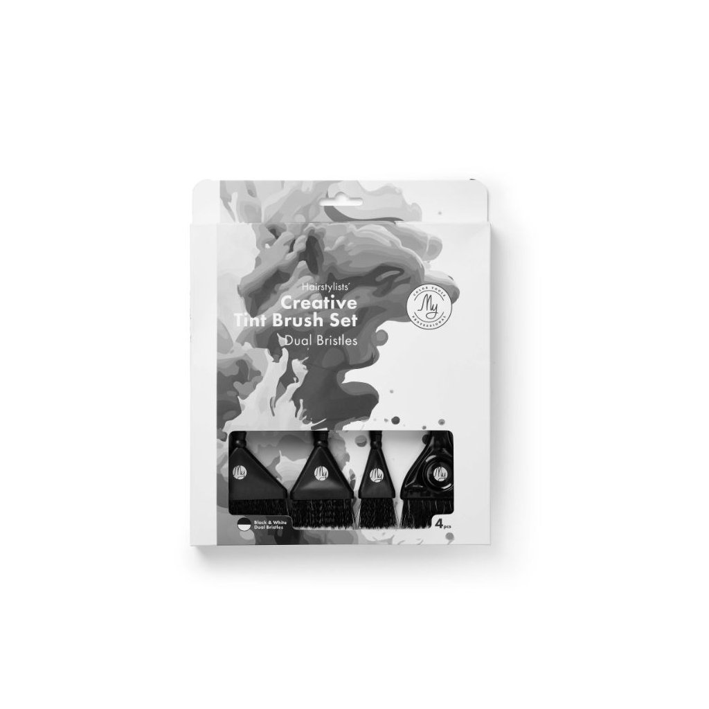 Profesionální sada štětců My Professional Creative pro práci v kadeřnickém salonu. Štětce disponují dlouhými bílými štětinami uvnitř a pevnými, zaoblenými černými štětinami po okrajích. Díky tomu umožňují čistou aplikaci a snadné nanášení barvy. Žádné klouzání, žádné stékání. Štetce jsou vhodné i pro náročné a texturované vlasy. Umožňují snadnou kontrolu a bezchybné nanášení barvy.