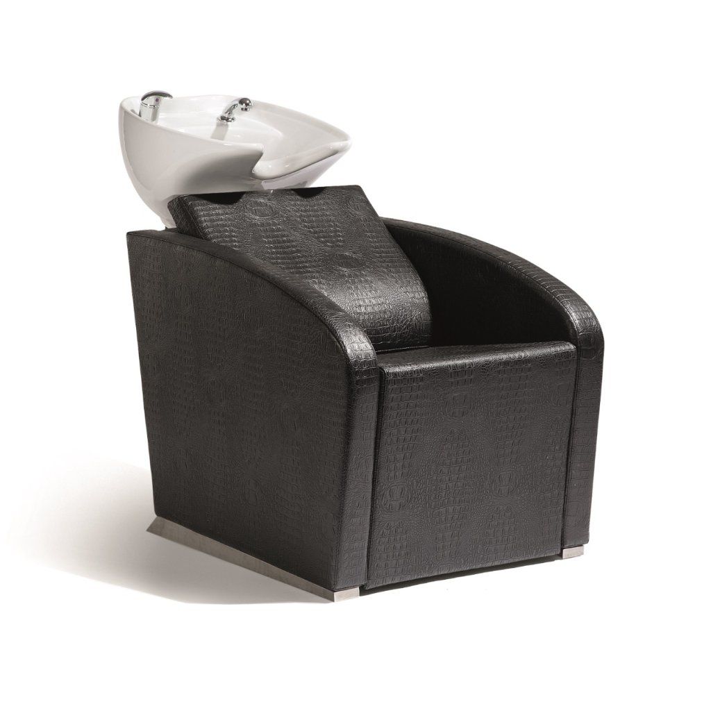Luxusní kadeřnický mycí box ve stylu pohovky, hluboké ergonomické umyvadlo, stojan a nohy umyvadla z nerezové oceli, výplň s pěnou o hustotě 50 kg/m3 pro maximální pohodlí a ocelový rám. Včetně italské baterie.