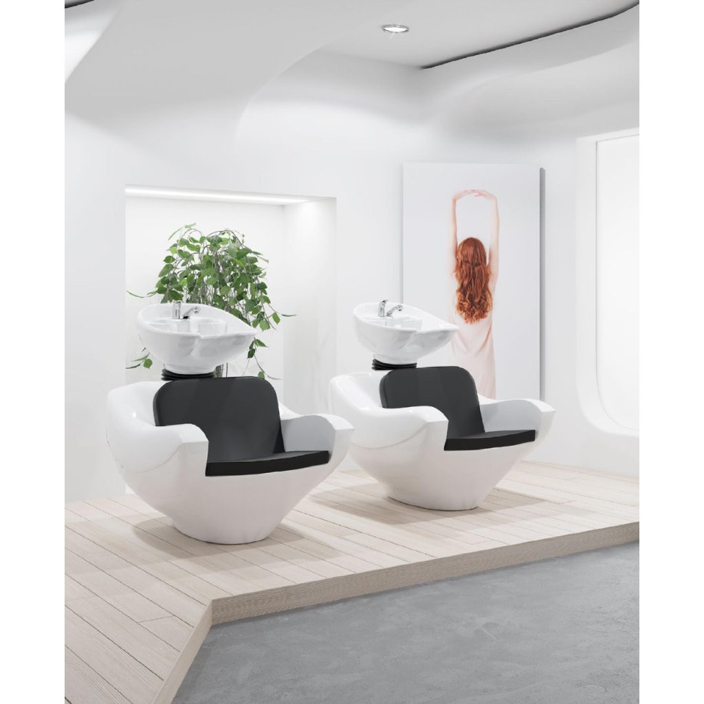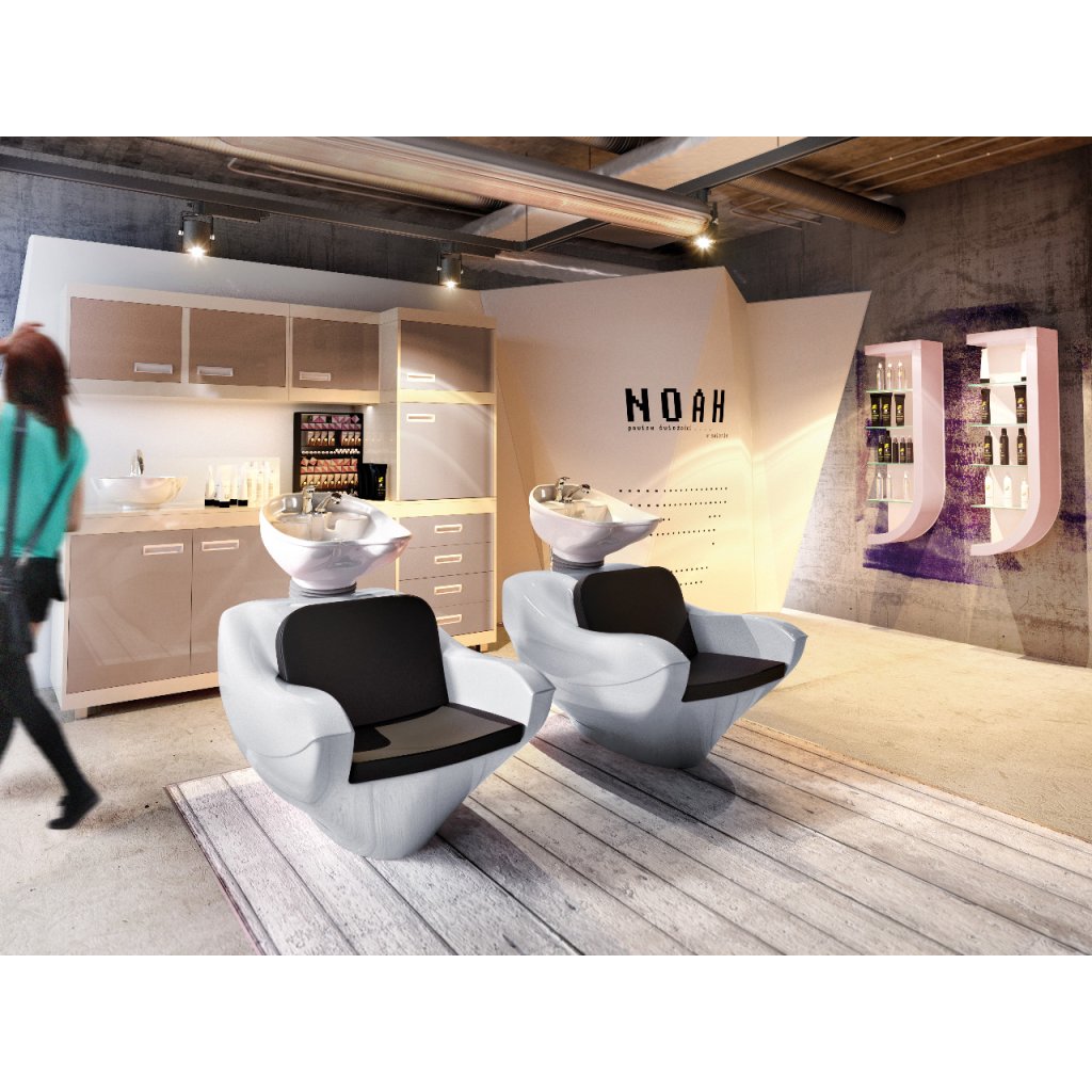 Mycí box Noah je ozdobou každého salonu. Vysoký lesk laku dává vyniknout jedinečným estetickým vlastnostem. Díky odolné struktuře a speciální péči o povrch poskytuje mycí box mimořádný komfort. Prostorné keramické umyvadlo a speciální držáky na kosmetiku usnadňují práci kadeřníka a pomáhají udržovat pořádek. Snadno udržovatelné a vysoce kvalitní čalounění zaručuje odolnost proti mechanickému poškození. Součástí mycího boxu je kompletní baterie se sprškou.