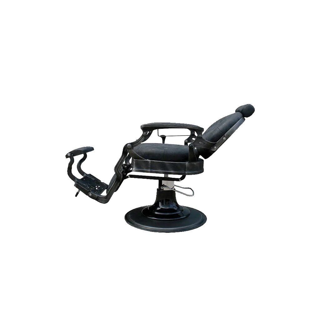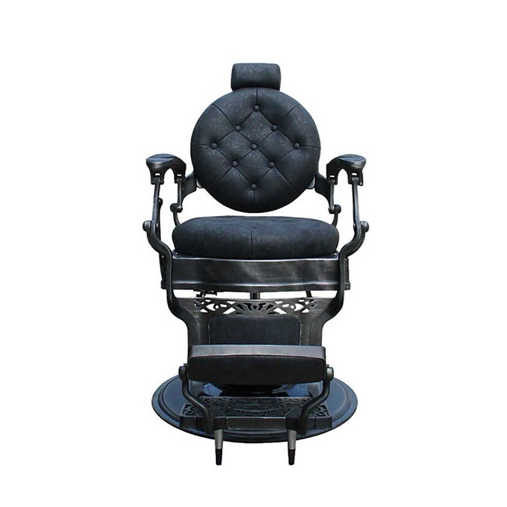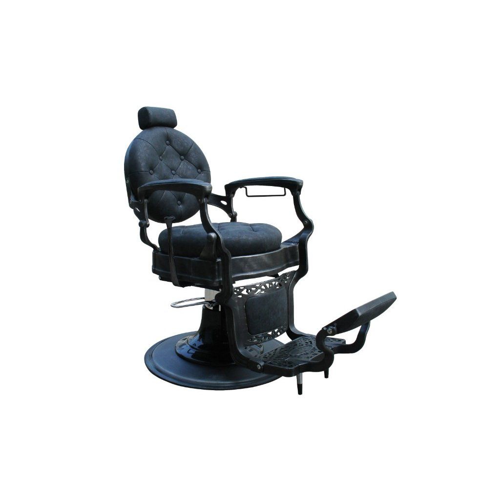 Profesionální Barber kadeřnické křeslo Malone do salonu. Nadčasový vintage design s prošívaným sedákem a opěradlem. Kovové detaily křesla a propracované opěrky dodávají punc originality. Barva křesla černá.