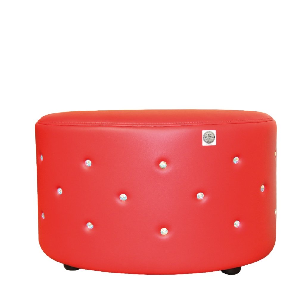 Dětský Puf Fruit do kadeřnického salonu. FRUIT jsou měkké a snadno omyvatelné potahy v zářivých barvách, zdobené originálními krystaly připomínajícími semínka zralého ovoce (krystaly Swarovski®). Kolekce působí realisticky, jako by byla vyňata přímo z animáku pro nejmenší. S takovou kolekcí v salonu budou rodiče s velkým potěšením plánovat každou návštěvu pro své děti.