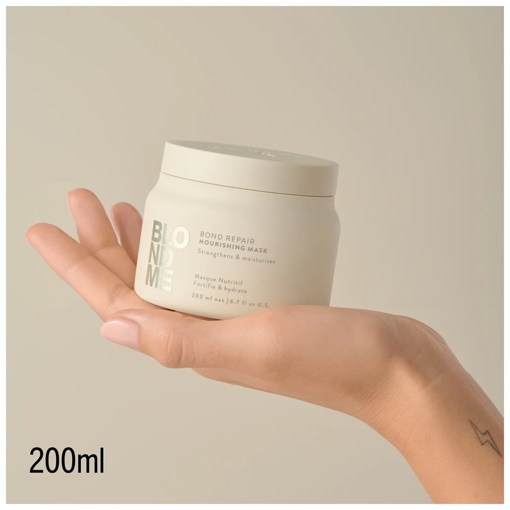 Intenzivně vyživující maska Blond Me Bond Repair Nourishing navržená speciálně pro potřeby zesvětlených, barvených a melírovaných vlasů. Její technologie Bond Repair obnovuje a posiluje vlasové vazby, což napomáhá jejich regeneraci. Zanechává vlasy hebké, lesklé a snadno upravitelné. Pro až 15x silnější vlasy. Intenzivně vyživuje a regeneruje zesvětlené nebo narušené vlasy. Obnovuje pružnost, dodává hydrataci a chrání před lámáním a třepením konečků. Usnadňuje rozčesání a předchází tak poškození vlasů.