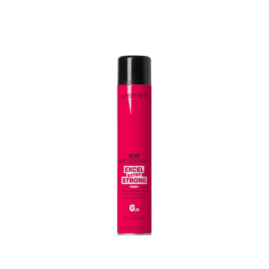 Lak na vlasy Selective Professional Now Next Generation Excel Extra Strong pro dokonalý styling. Poskytuje extra silnou fixaci a dlouhotrvající efekt při tvorbě účesů. Nezanechává stopy, vlasy nezatěžuje a lze je snadno rozčesat hřebenem. Lak je vhodný pro všechny typy vlasů a účesů.