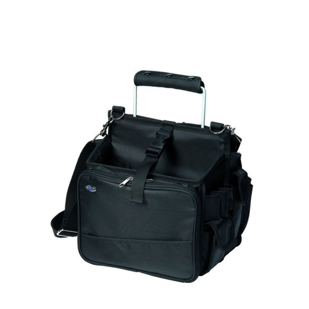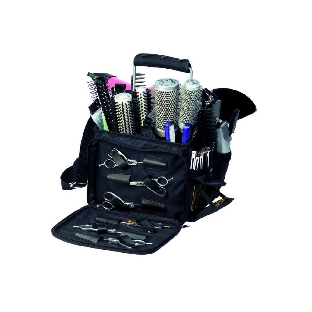 Kadeřnická nylonová taška vhodná pro přepravu pomůcek a dalších kadeřnických nezbytností. Barva černá. Nosnost 7 kg.
