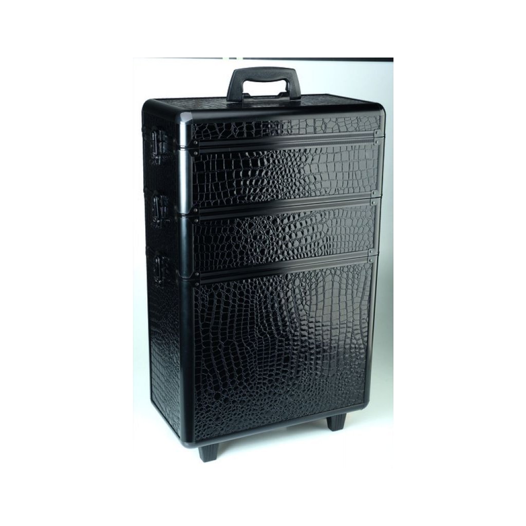 Koženkový kufr Sibel Croco vhodný pro převoz nejen kadeřnických a kosmetických pomůcek a materiálu. Rozměr 43 x 22 x 65 cm. Možné složit do 3 různých výšek. Maximální nosnost 20 kg.