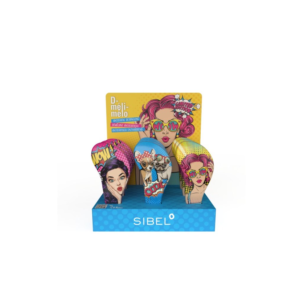 Limitovaná edice rozčesávacího kartáče Sibel Detangler Pop-Art. Štětiny kartáče jsou navrženy tak, aby nezpůsobil lámání nebo jiné mechanické poškození vlasů. Dokonale rozčeše všechny typy vlasů. Kartáč s inovativním designem nabízí flexibilní štětiny ve 3 různých výškách – rozmotají vlasy bez poškození vlákna, ideální i na citlivé vlasy. Barva modrá.