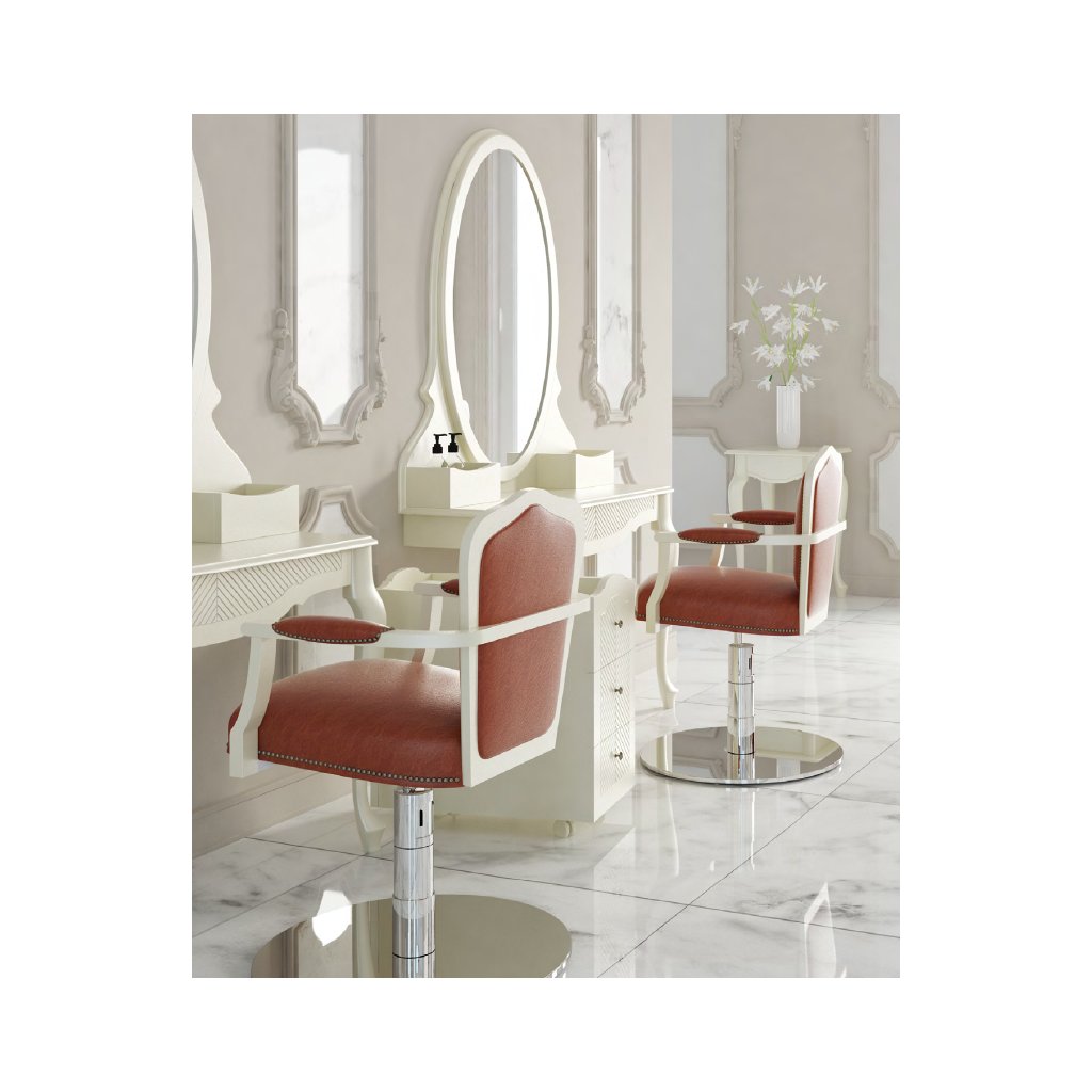 Profesionální stolek vysoký Louise do čekárny kadeřnického salonu. Výrazná stylová kolekce Louise, po staletí obdivovaná pro své jemné zpracování, oválné sedáky a opěradla s medailonem tvarovaným čalouněním. Tento nábytek ve stylu Ludvíka XV. je ideální pro salony s nádherným uspořádáním. Pokud chcete, aby váš salon dosáhl nepopiratelně rozpoznatelného vzhledu, kterému se nic jiného nevyrovná, pak je tato kolekce pro vás.