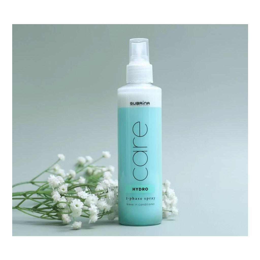 Hydratační bezoplachový kondicionér Subrina Professional Care Hydro 2-phase bezoplachový kondicionér ve spreji. Usnadňuje rozčesávání vlasů a dodává jim pružnost, hebkost a výrazný lesk. Obsahuje hedvábné proteiny, které hydratují, uhlazují a pomáhají zacelit polámané konečky vlasů. Je ideální pro okamžité výsledky a pro každodenní použití.