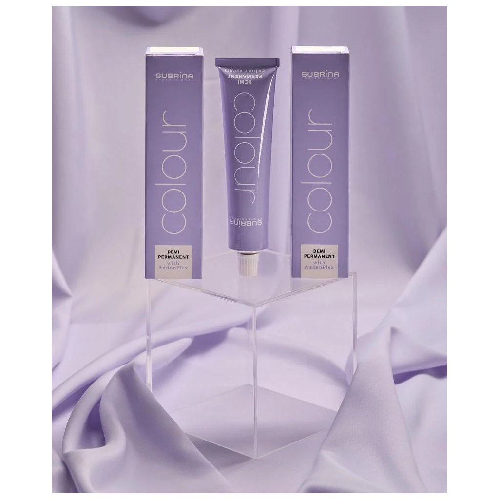 Přeliv na vlasy bez amoniaku Subrina Professional Demi Permanent Colour Toner poskytuje vlasům dokonalou barvu s dokonalým leskem. Přeliv udržuje zdravý vzhled přírodních i barvených vlasů. Dodává jim hebkost a posiluje je. Zaceluje také jejich roztřepené konečky. Přeliv je vhodný pro neutralizaci teplých a mosazných tónů, (zejména po odbarvování). Díky technologii AminoPlex oživuje i ty nejmatnější vlasy. Kombinace prostředí s nízkým pH spolu s argininem, mandlovým olejem a omega-9 dodává vlasům plnost, zářivý lesk a až o 20 % delší stálost barvy. Technologie Aroma Guard pracuje s vůněmi produktu, aby se při barvení uvolňovaly pouze příjemné vůně. Přeliv vydrží až 24 umytí a poskytuje krytí šedých vlasů až do 70 %. Včelí vosk dodává vlasům strukturu a usnadňuje aplikaci přelivu vytvořením krémové konzistence. Složení přelivu obsahuje 90 % přírodních ingrediencí a je vhodné i pro citlivou pokožku. Neobsahuje resorcinol.