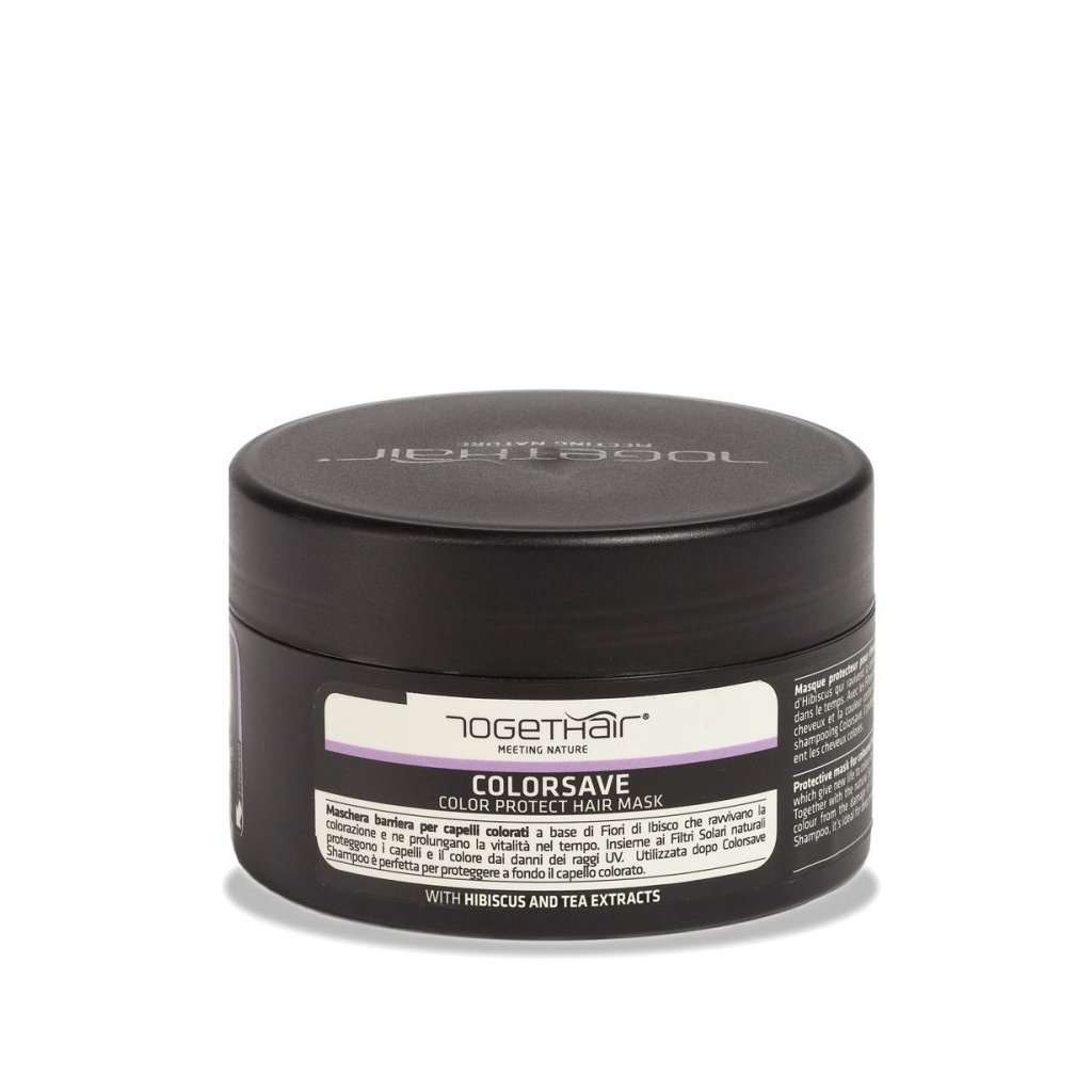 Hloubková revitalizační maska Togethair Colorsave Protect maska 500 ml dodává barveným vlasům vitalitu, sílu a zářivý lesk. Obsahuje výtažky z květů ibišku a čajovníku, které zároveň zajistí ochranu před UV zářením. Pro maximální efekt je vhodné použití šamponu i kondicionéru z produktové řady Colorsave.