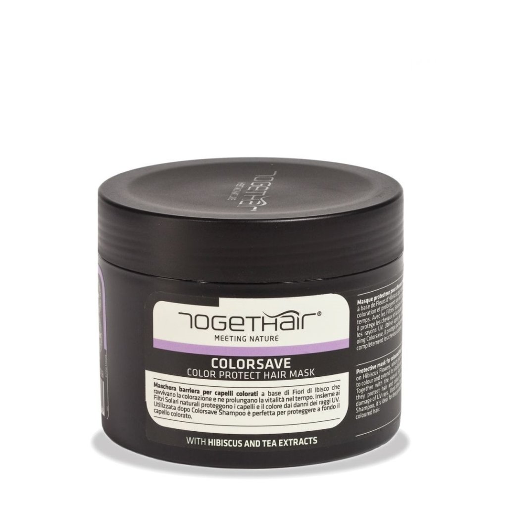 Hloubková revitalizační maska Togethair Colorsave Protect maska 500 ml dodává barveným vlasům vitalitu, sílu a zářivý lesk. Obsahuje výtažky z květů ibišku a čajovníku, které zároveň zajistí ochranu před UV zářením. Pro maximální efekt je vhodné použití šamponu i kondicionéru z produktové řady Colorsave.