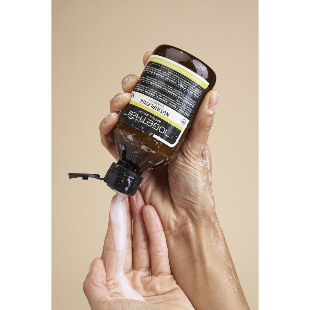 Šampon pro suché a roztřepení vlasy Togethair Nutriplenia. Restrukturalizační šampon s olejem z indického angreštu (amla) a s komplexem Absolute Repair. Vhodný pro suché vlasy bez života. Posiluje vlasové vlákno a dodává vlasům hydrataci, objem a lesk. Vlasy jsou po používání silnější a zdravější.