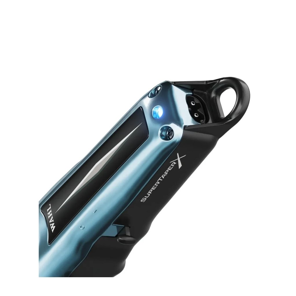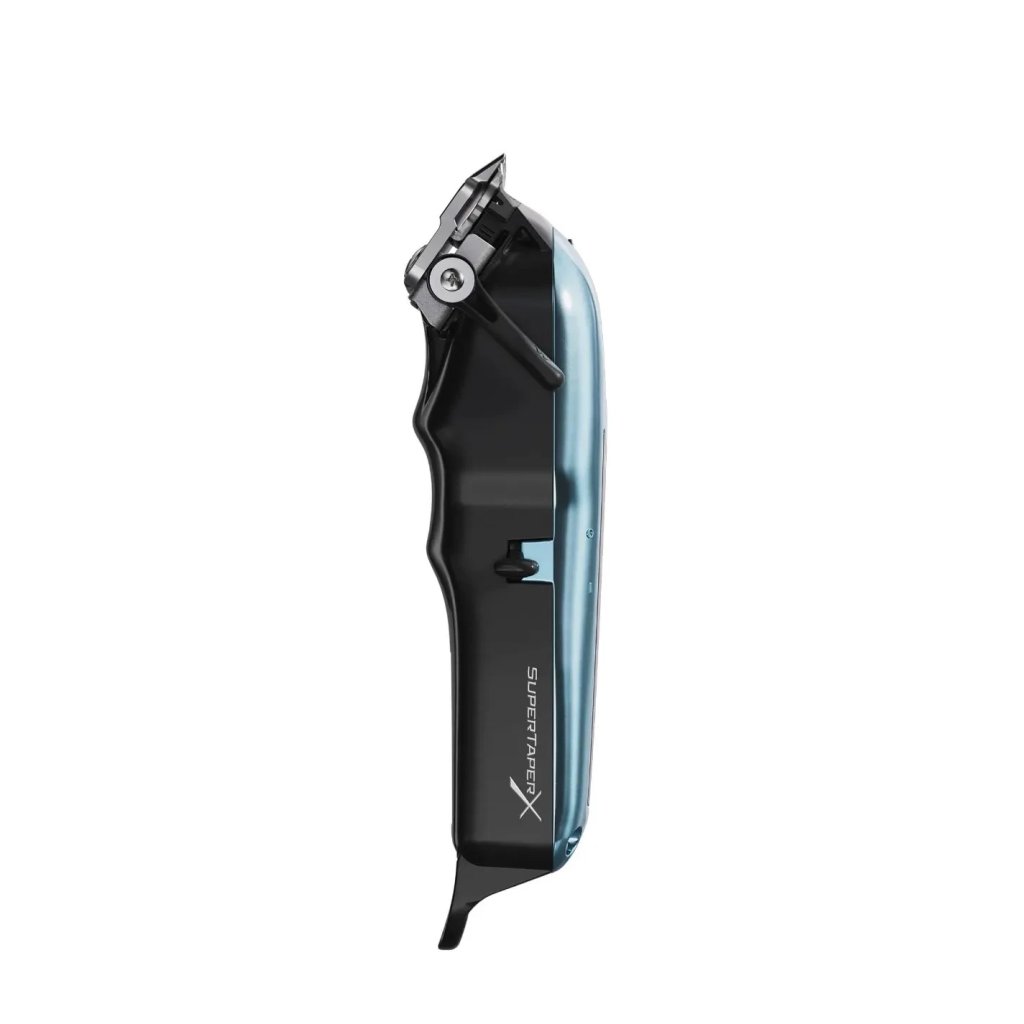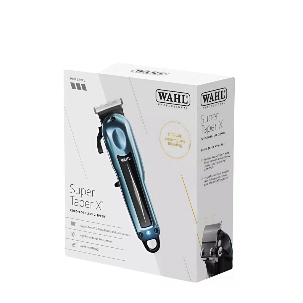 Profesionální stříhací strojek Wahl Super Taper X Cordless Clipper. Strojek kombinuje moderní technologii výroby speciální patentované střihací hlavice Stagger-Tooth T-Blade s velmi výkonným motorem v lehké konstrukci s modrým metalickým designem. Ideální pro jemné vyholování a přesné střihy. Strojek disponuje lithiovým akumulátorem s delší životností, bez paměťového efektu. Doba nabíjení je 60 min., provozní doba 100 min. Spolehlivý a silný DC motor s otáčkami 6.500/min. Oceníte také kvalitní širokou kovovou střihací hlavici STRAGGER-TOOTH T-Blade v šířce 45 mm a výšce střihu 0,5 - 1,2 mm. Patentovaný břit ve tvaru písmene T s technologií Stagger-Tooth™ umožňuje plynulé prolínání a texturování v jednom tahu pro bezchybný a jemnější výsledek. Hmotnost strojku je pouhých 290 g. Součástí sady je síťový transformátor, nástavce 1,5 mm, 3 mm, 4,5 mm, 6,0 mm, 10 mm, 13 mm, 16 mm, 19 mm, 22 mm, 25 mm, čistící štěteček, olejnička se speciálním olejem na stříhací hlavice, ochranný kryt stříhací hlavice.