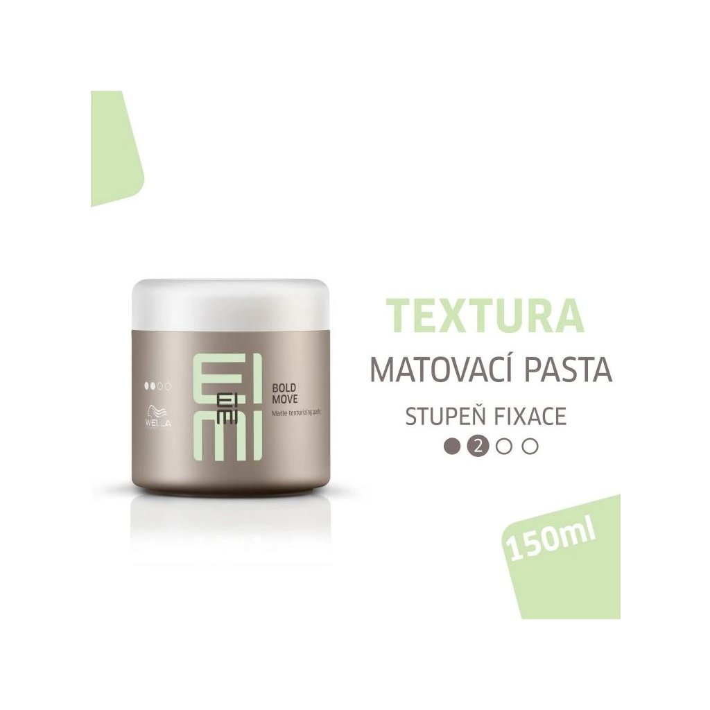 Flexibilní matová pasta Wella Professionals Eimi Bold Move pro texturu s jemným nelepivým složením. Dodává vlasům jemnou fixaci. Vlasy nezatěžuje, ani neslepuje a nezanechává mastný film. Obsahuje brazilský karnaubský vosk. Vhodná na krátký pánský nebo dámský střih vlasů i pro střih bob nebo longbob. Stupeň fixace 2.
