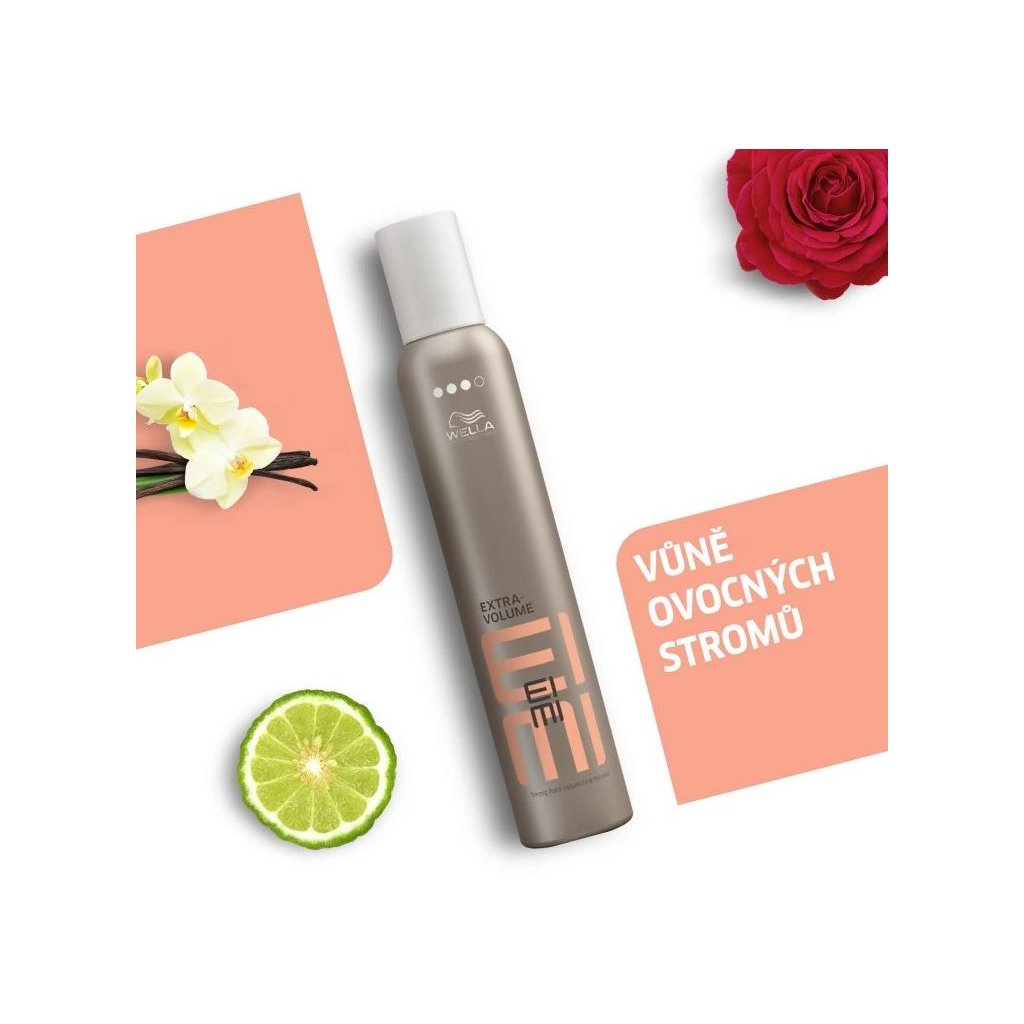 Pěnové tužidlo Wella Professionals Eimi Extra Volume pro ohromující objem a tvarování se silnou fixací. Chrání vlasy před dehydratací při fénování. Podporuje objem u kořínku a vytvoří tvar vlasům v délkách. Vhodné na střední až silné vlasy. Stupeň fixace 3.