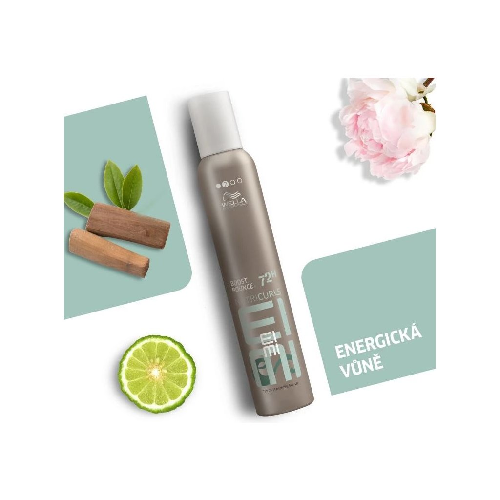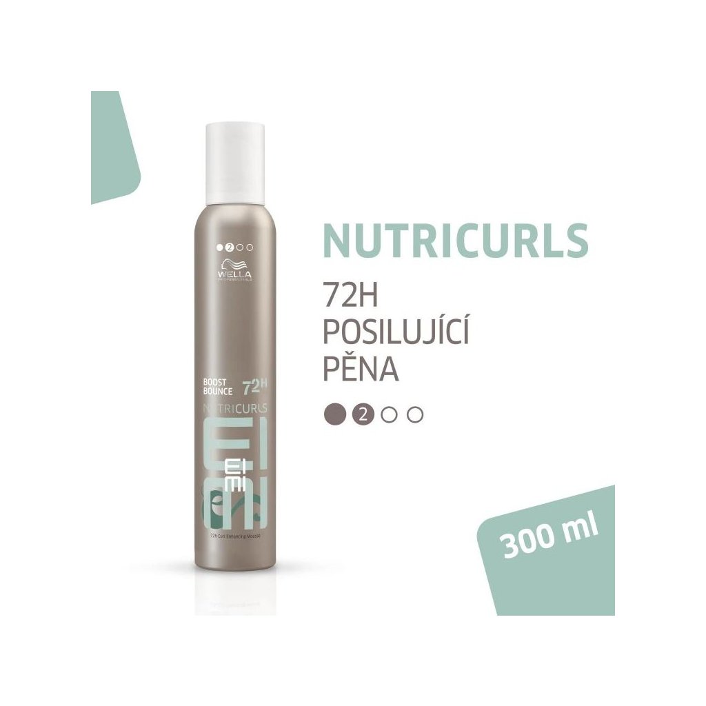 Definující bezoplachová pěna pro zvětšení objemu Wella Professionals Eimi Nutricurls Boost Bounce. Dodá kudrnatým vlasům objem a lesk. Zamezuje krepatění. Vhodná pro všechny typy kudrnatých vlasů. Chrání před mechanickým poškozením vlasů. Stupeň fixace 2.
